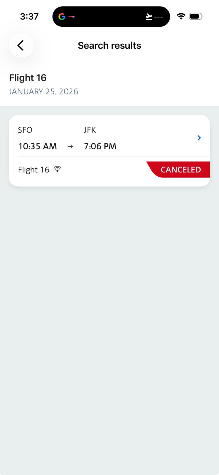 I moved my flight forward almost 24 hours and chose to route through Heathrow instead of JFK to avoid winter storm Fern, which indeed resulted in the cancellation of my previously-booked flight: