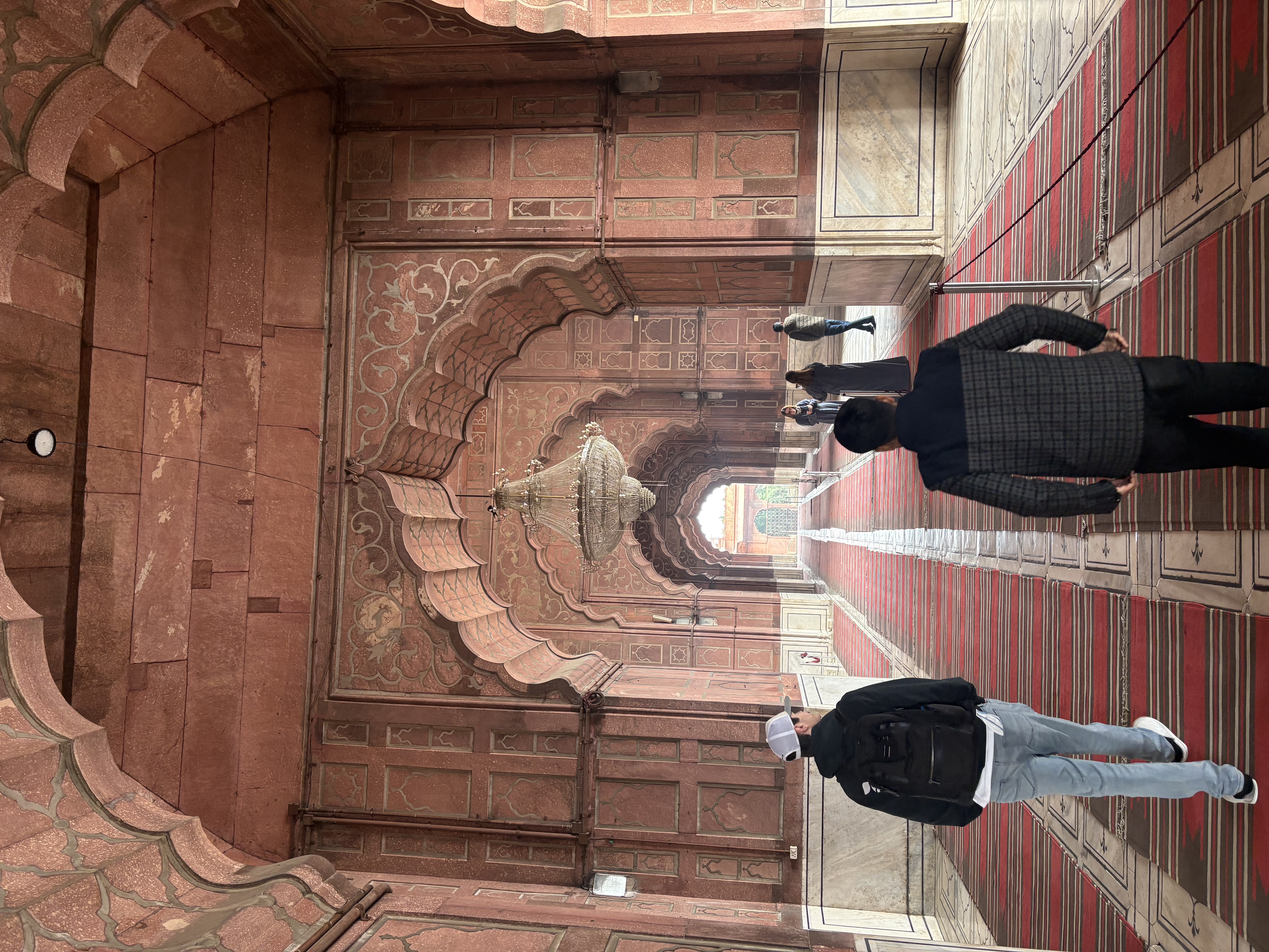 The Jama Masjid, a gigantic mosque built of red sandstone, white marble from Rajasthan, and onyx imported from Belgium, was very impressive: