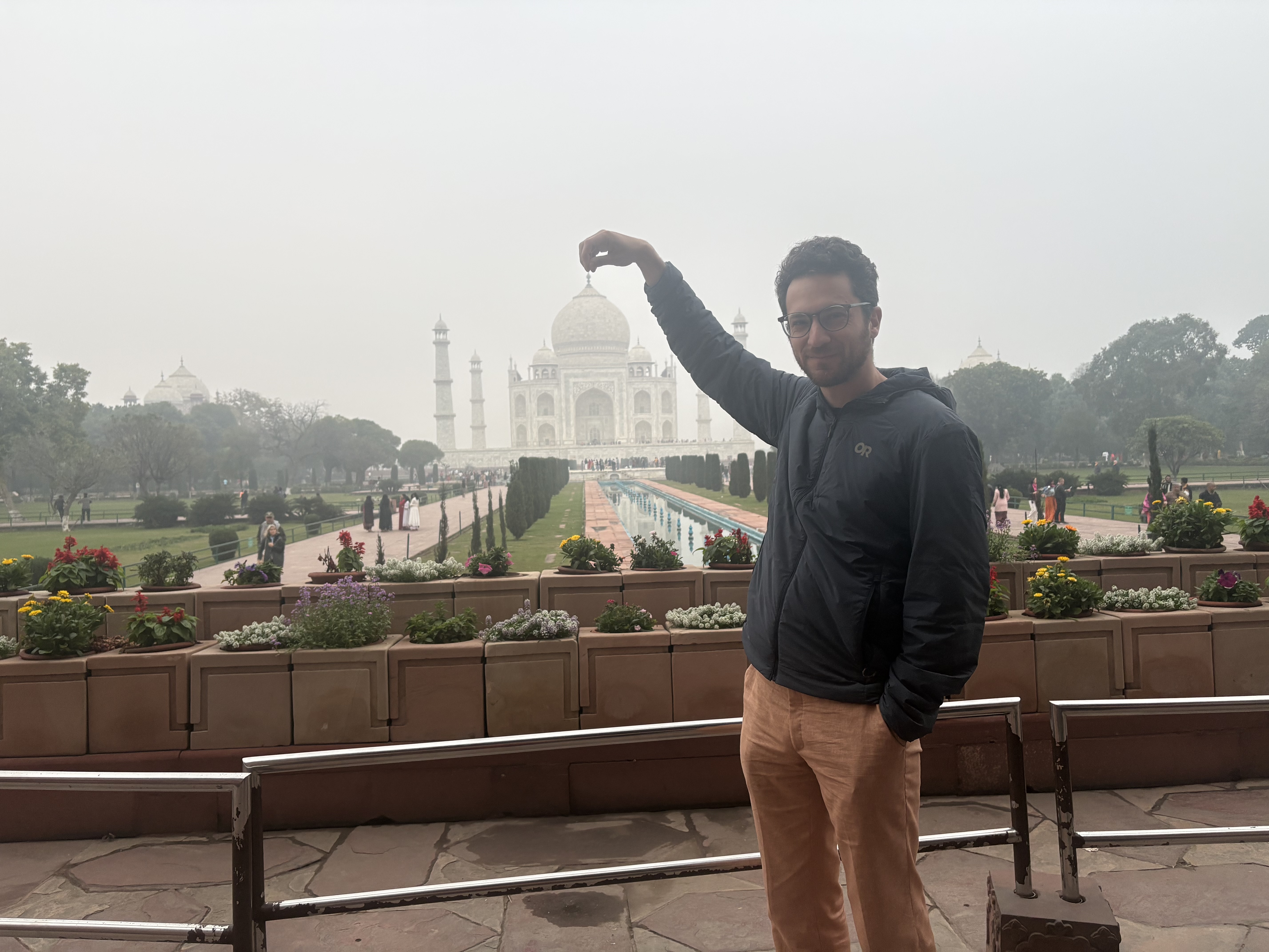 The Taj Mahal was, even in my exhausted state, very stunning against the pollution-gray sky: